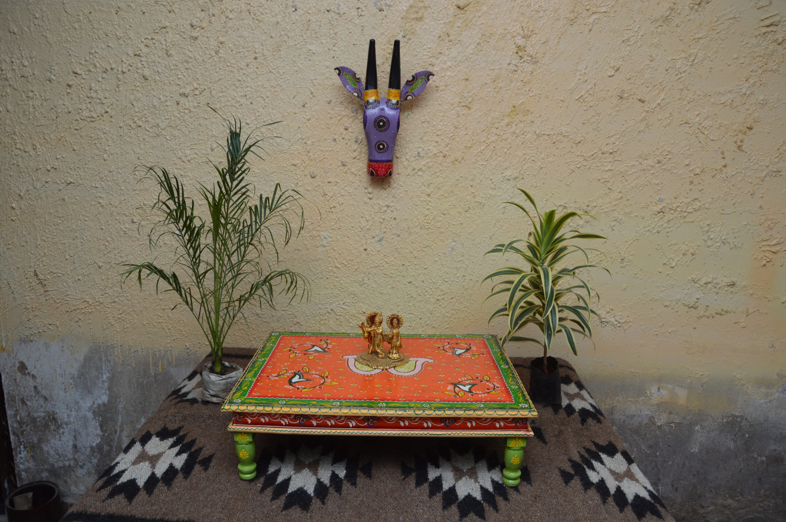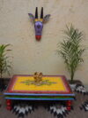 Ideal for use during pooja rituals, festivals, home décor setups, product photography, or simply as a cultural décor accent, this chowki infuses any space with warmth and vibrancy. Its handcrafted finish ensures that each piece is unique, reflecting the soul and heritage of Rajasthani folk art.
